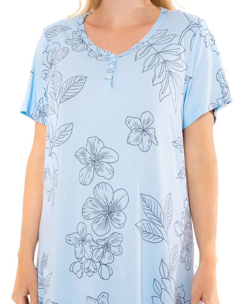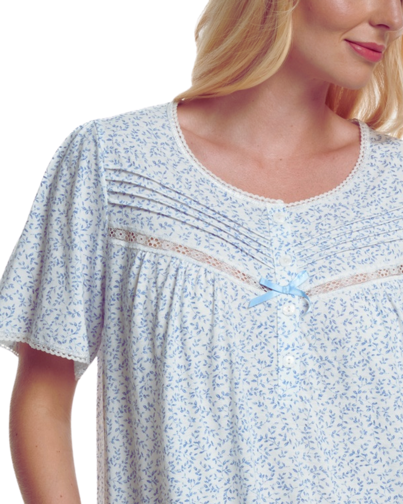 Summer Meadow Print 100% Cotton Jersey Short Sleeve Nightdress