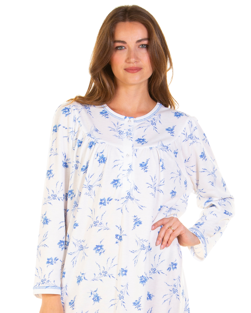 Ladies 100% Cotton Long Sleeve 45" Length Floral Bouquet Nightdress