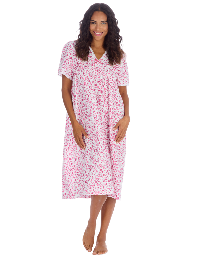 Ladies Long Length 100% Cotton Pink Lotus Nightdress