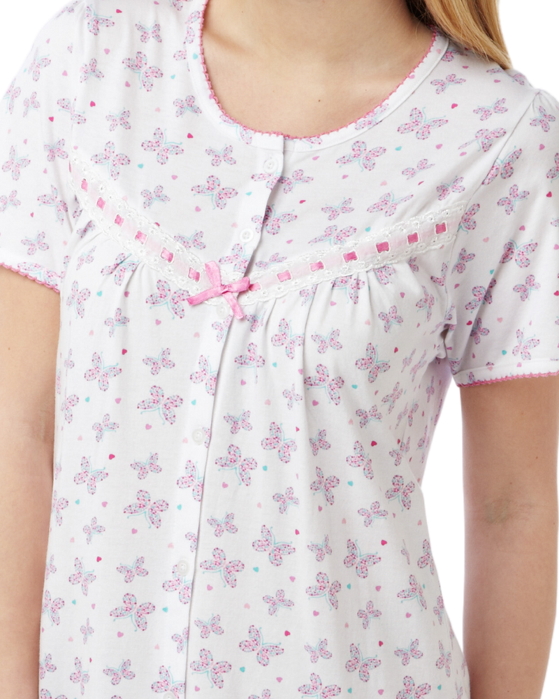 Butterfly Print 100% Cotton Jersey Short Sleeve Nightdress