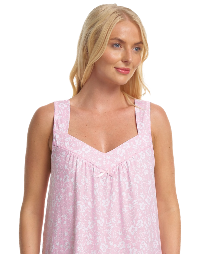 Summer Meadow Print 100% Cotton Jersey Strappy Nightdress