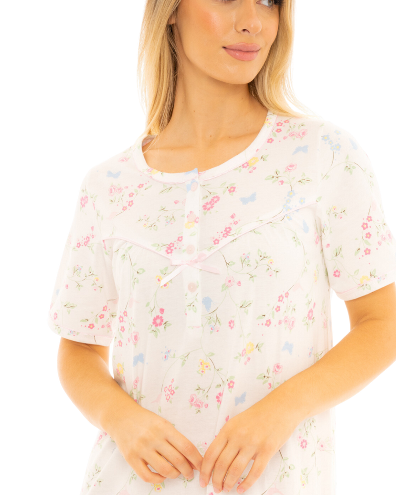Butterfly Print 100% Cotton Jersey Short Sleeve Nightdress