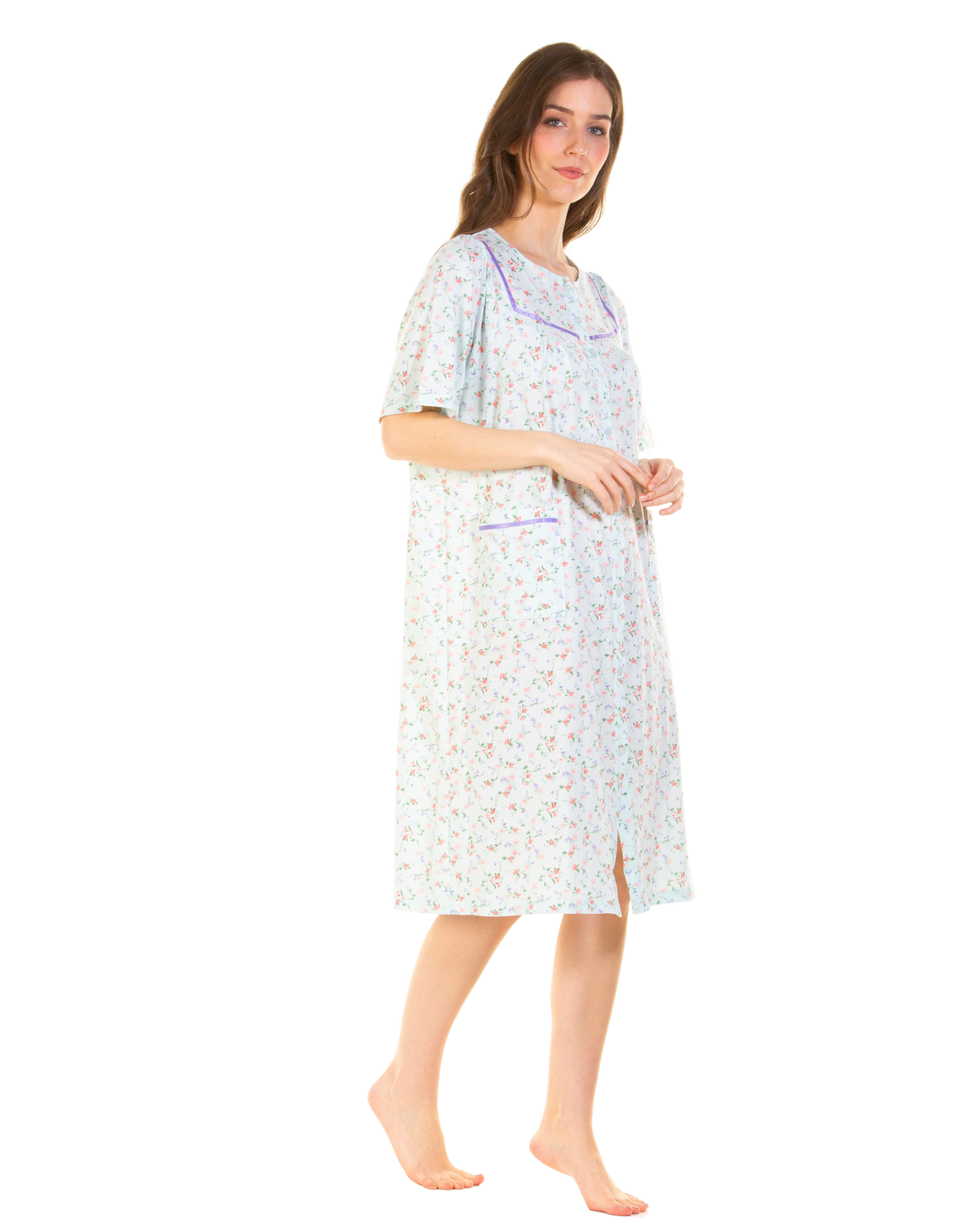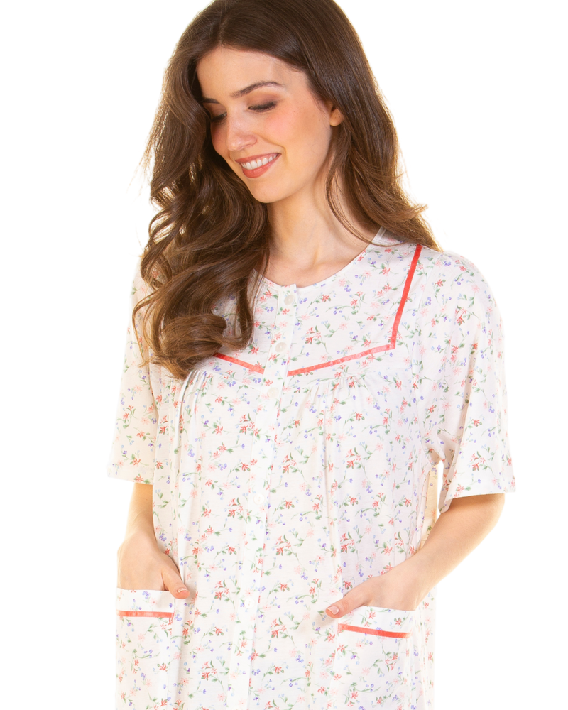 Floral Print Cotton Jersey Button Through Nightdress