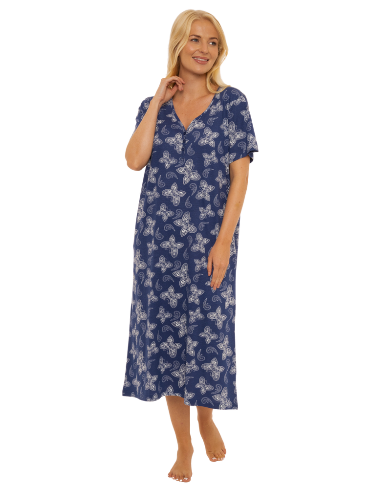 Butterfly Print 100% Cotton Jersey Button Through Nightdress